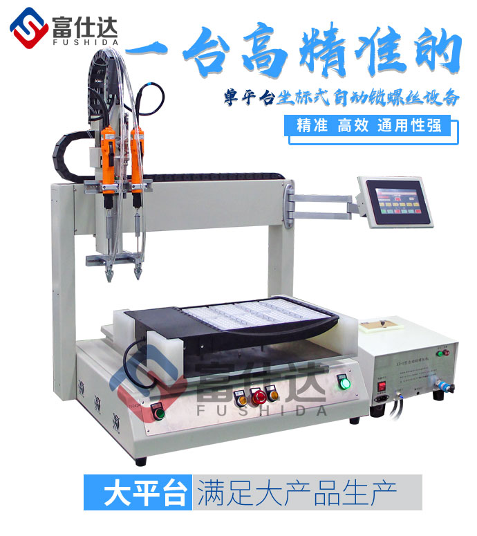 富仕達單平臺自動鎖螺絲機是指單平臺坐標式自動鎖螺絲機,通常用在面積較大產品,如:寫字板、大家電、天花吊頂、大型玩具及大型LED模組等。